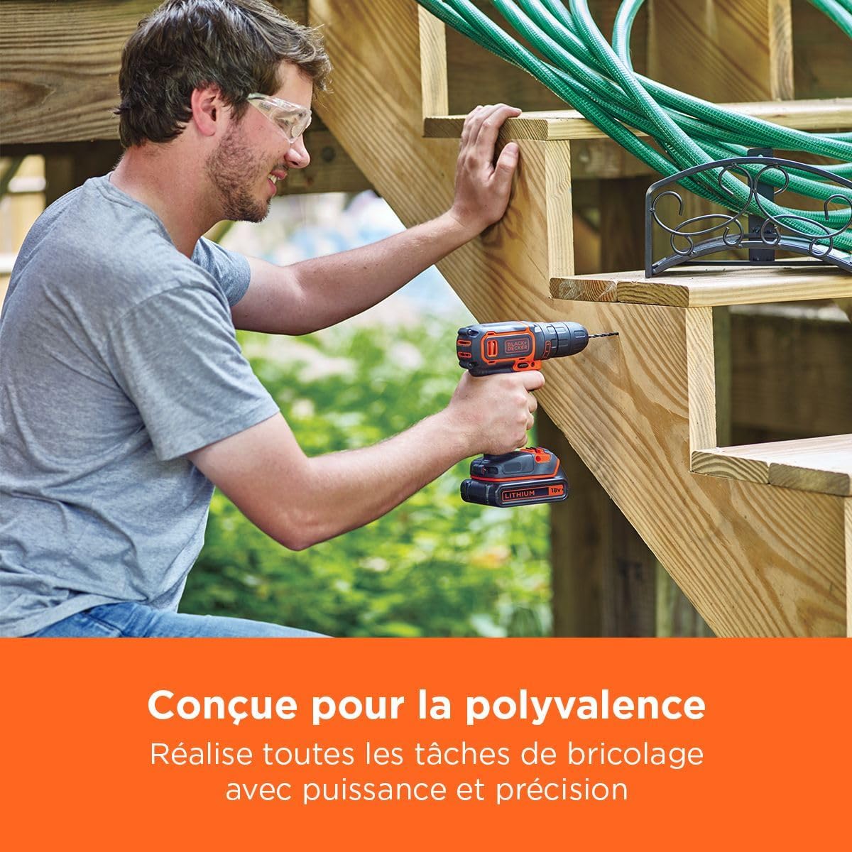Pesant seulement 1,5 kg, la perceuse-visseuse sans fil BLACK+DECKER est conçue pour être utilisée sans effort, même dans des espaces restreints ou lors de longues sessions de travail. Son adhérence douce et antidérapante réduit la fatigue, vous permettant de travailler plus longtemps et de manière plus confortable.